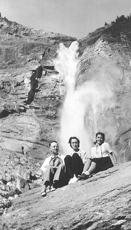 With Wilford and Catherine at Takakaw Falls, 1500 feet high, in Yoha Valley, British Columbia, July 12, 1945