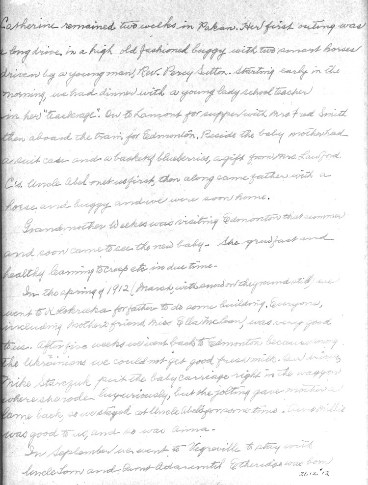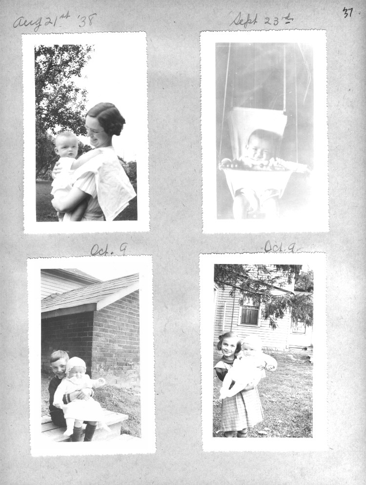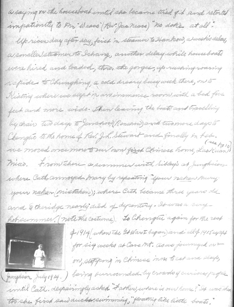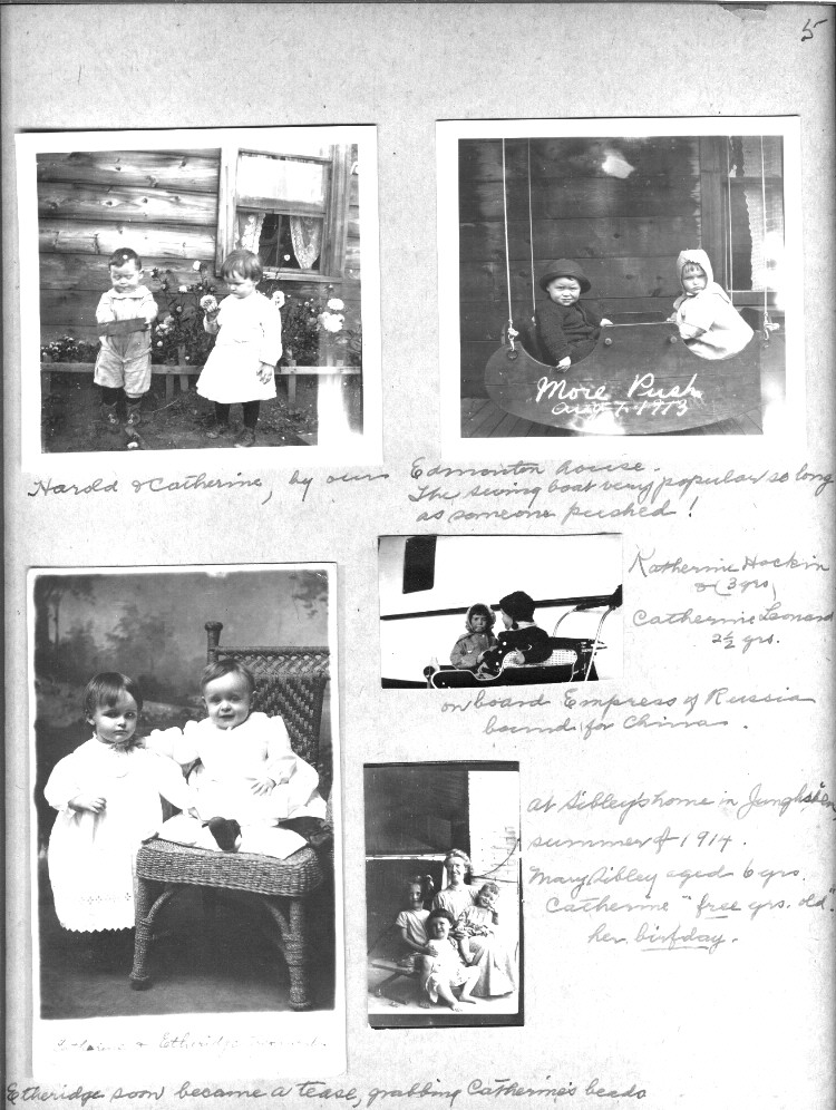 Top: At Mary Baird's British Columbia home Catherine is standing on the ground. On the porch: Mary Baird holding 3 month old Voy Baird, Etheridge (age 12), Edith, Wesley (age 4, behind post), and (barely visible) Alice or Evelyn holding 13 month old Frances Baird |