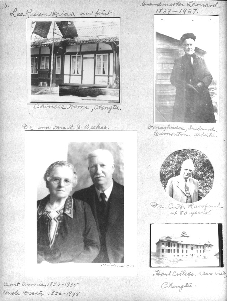Bottom: In front of Fairground parsonage Front: Catherine, Edith, Aunt Evie Weekes Kerr, Wesley Back: Alice, Uncle Doctor (Wm. James Weekes), Uncle Kerr (Rev. George Kerr), Evelyn |