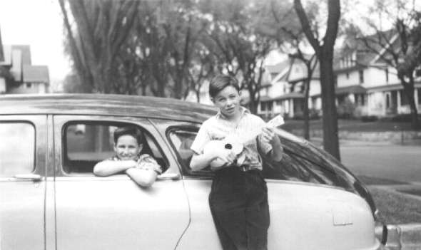 With the family Nash in the driveway at Humboldt Ave., 1953