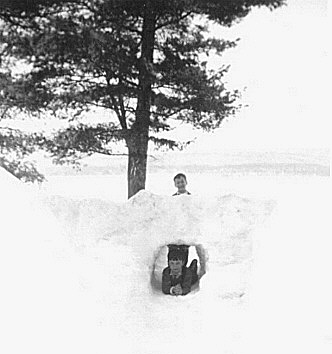 Robert and Jimmy with snow tunnel, Feb. 1947