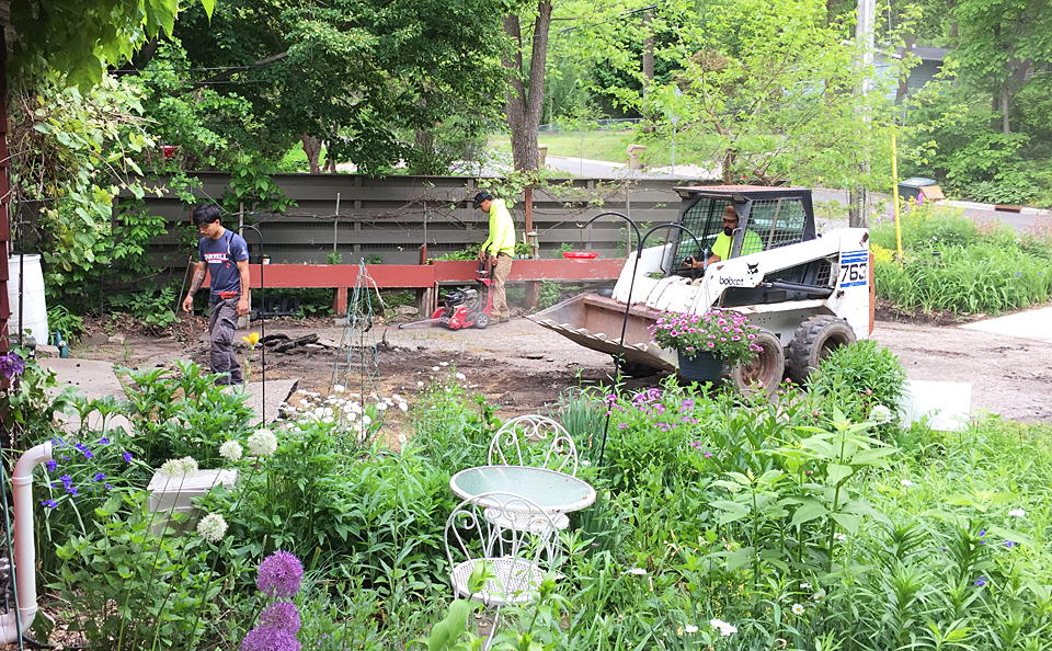 While Barbara was in Italy with Casey, Ian and Layla, replacement of our asphalt driveway with concrete was begun on 5/27/25. A cut parallel to the flower boxes allowed the asphalt beneath them to be retained.
