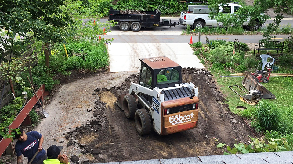 The asphalt was loaded in the trailer in the road. Click here for a video clip.