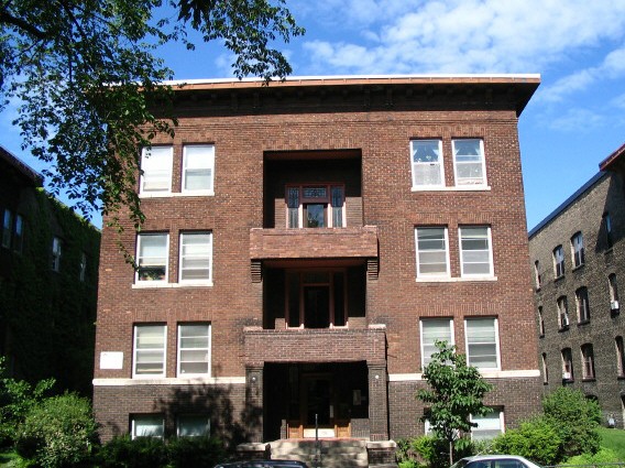 Above is the front of the apartment building at 1816 Stevens Avenue South, where James lived in Apartment 25 from November 1980 until November 2004. James' apartment was inside the two windows on the third floor, right side. ![]() The above photo shows the North side also. James' apartment was behind the two highest windows facing the sun and the first four windows on the north side. His front windows looked out over Stevens Square Park. |