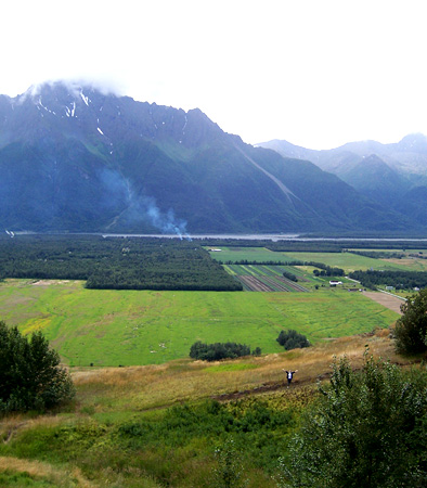 Barbara, arms outstretched, coming up the Butte Hiking Trail.