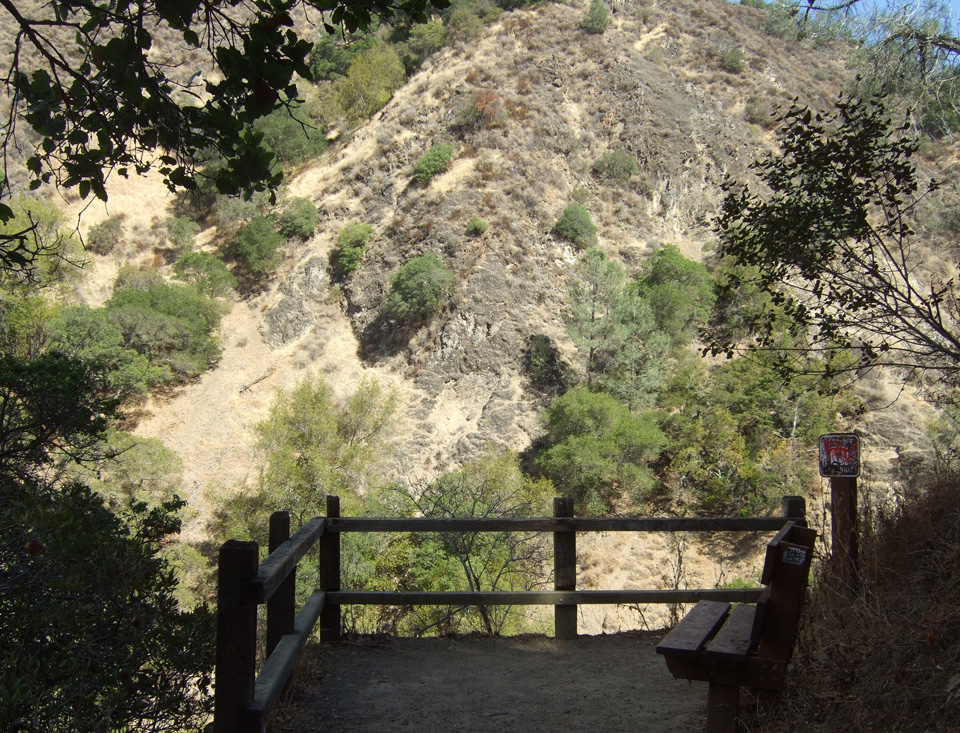Near the top I tried a side trail I had not hiked before, but I soon came to a "Trail Closed" sign, so I headed back down past this rest spot