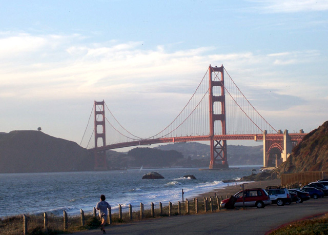 Golden Gate Bridge in the setting sun