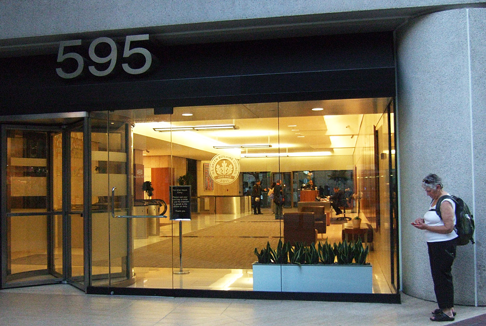 Mass transit and more walking got us to Mischa's workplace at 595 Market St.