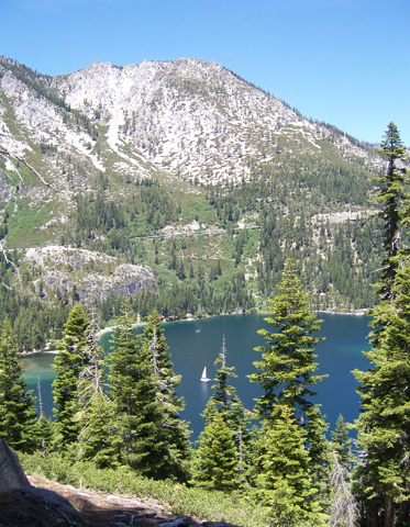 Roadside stop further around Lake Tahoe overlooking a sheltered bay