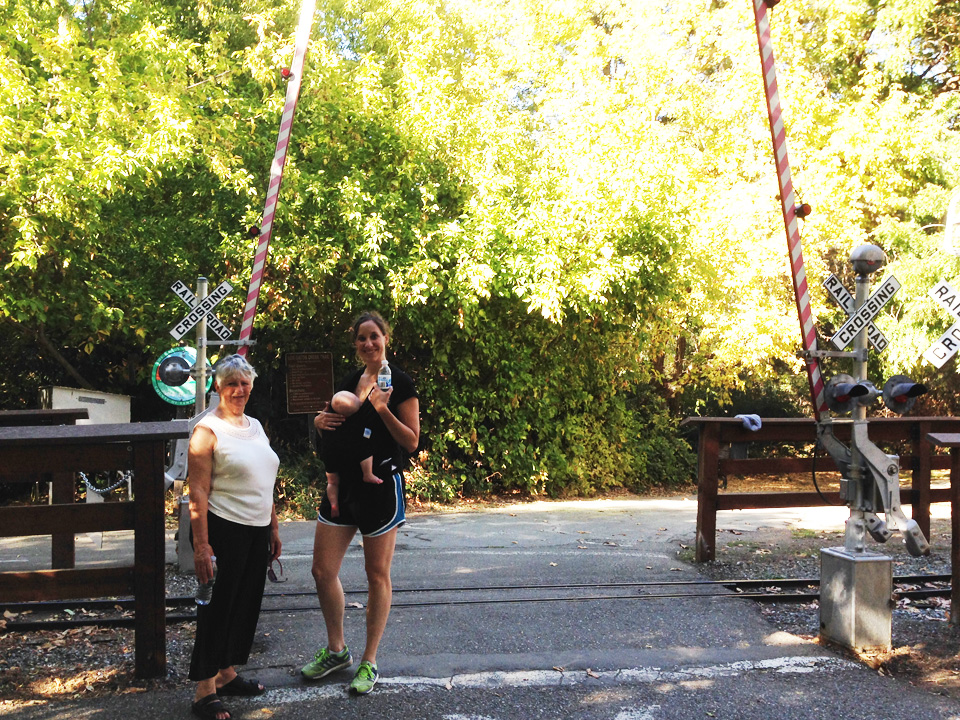 A stop by the miniature railroad crossing - Barbara, Evelyn and Elodie