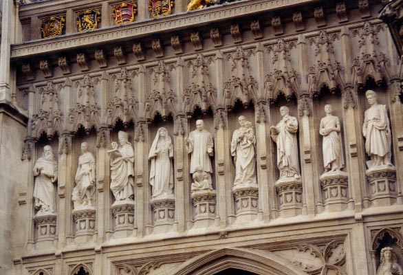 Westminster Abbey detail of statues above the doorways.