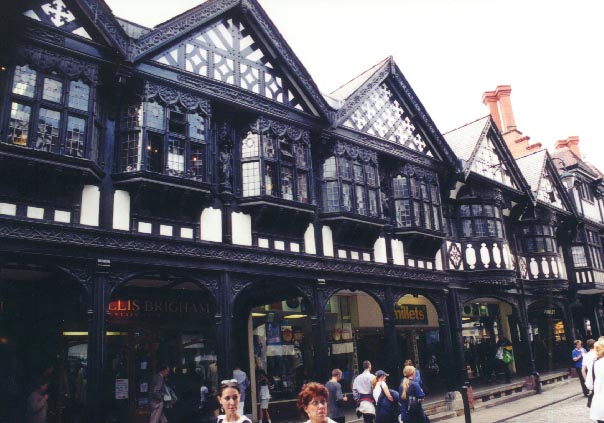 Medieval half-timbered buildings in Chester, England.