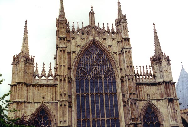 Front view of the York Minister with its 'as-large-as-a-tennis-court' stained glass window.