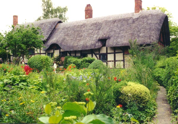 Anne Hathaway's cottage on outskirts of Stratford (she married Shakespeare).