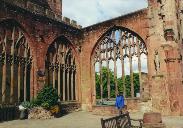 The old Coventry Cathedral, destroyed in World War Two, now kept as a memorial.