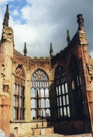 Another view of the old Coventry Cathedral, Coventry, England.
