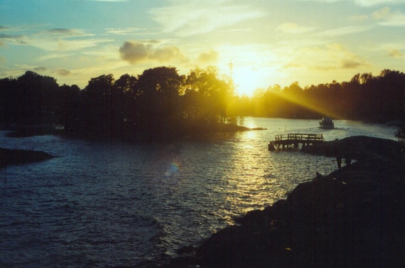 Sunset scene taken from the window at the Helsinki seaside restaurant.