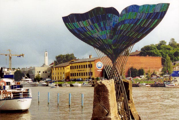 Turku canal: modern sculpture honoring the sea and sailing.