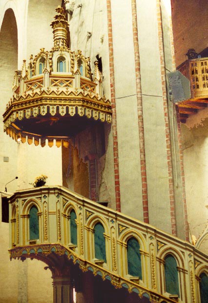 Turku catherdral, built beginning in the 1200's: The main pulpit with hand-work decorations.