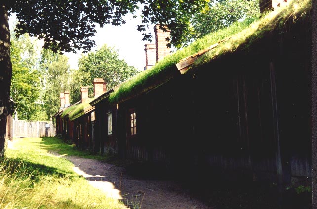 Turku Mediaeval village--grass growing on the roofs of row houses.