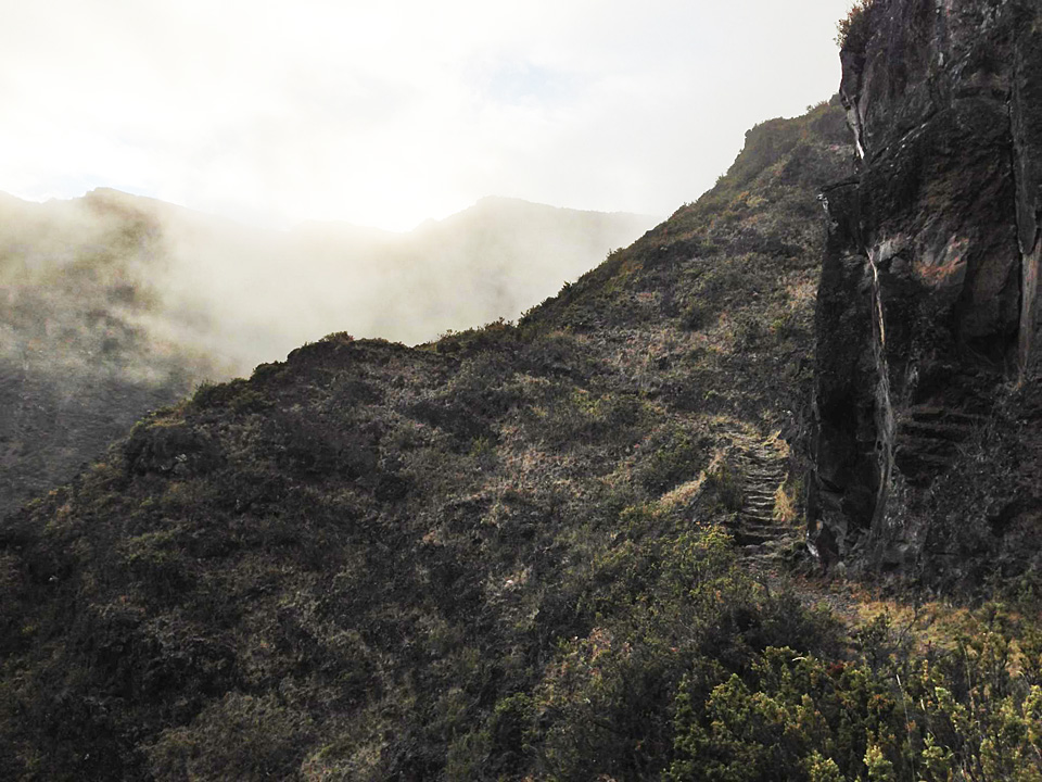About a mile and a half from the Halemau'u trailhead, with sunset in less than an hour