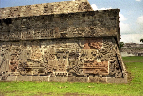 More of their history carved in the wall, complete with symbolic characters. This is the pyramid to Quetzalcoatl, the plumed serpent.
