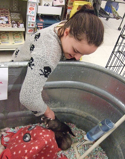 Tavery got to meet the baby ferrets at the garden store in Port Ontario.