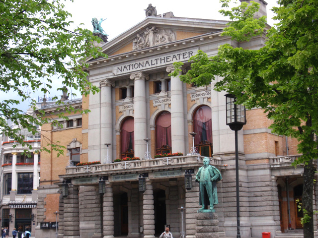 31. Norway’s National Theater in downtown Oslo. That’s a statue of one of their most famous playwrights, Henrik Ibsen.