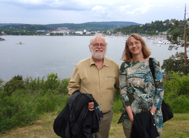 35. Patty and warren outside Olso in a suburban area of parks and condos.