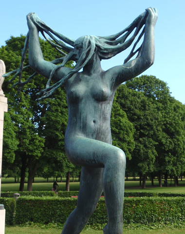 47b. A lady with long stringy hair.