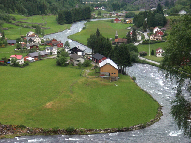 100. View from the train coming down to the fjord—a lovely riverside village.