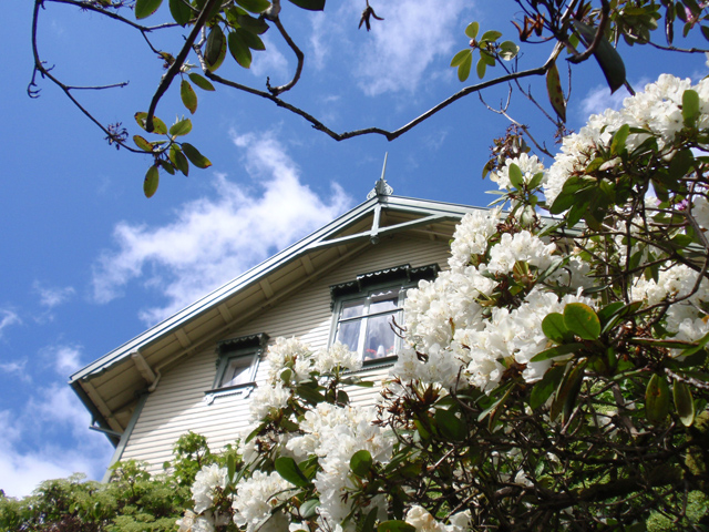 125. One of my favorite shots—flowering bushes next to Grieg’s house, side-view, on the steep path up from the work cottage.