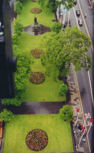 Looking down from the Scott Tower at the adjacent park, Edinburgh.