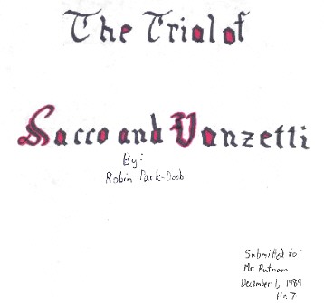On April 15, 1920, 9:15 AM, in South Braintree, Massachusetts (a small town about ten miles south of Boston,) $15,776.51 to pay the employees of Slater and Morril's shoe factory was being carried to that factory from a nearby train station. On the way there, the carrier of the money noticed a large black seven-seater with its engine going parked on the side of the road. In front of the Slater and Morril's offices there were two more cars with people in them who appeared to be waiting for somebody. As he passed with the money, one of the drivers called, "All right,"1 and both cars drove off down the road. Once the money was inside, it was repackaged into two boxes and was to be taken down the road to where the wages were paid. Frederick Parmenter, the acting paymaster for that week, and Alessandro Berardelli, a guard that worked for the company, each took a box and started down the street. Berardelli carried a .38 revolyer. They passed several people, including fifteen dark-skinned construction workers digging a foundation for a new restaurant and two smallish men with dark clothes standing casually between two telegraph posts. One of the dark clothed men grabbed suddenly at Berardelli while the other shot him three times and shot Parmenter once. Parmenter dropped his box and staggered towards the construction workers but was shot again and fell. By now many people had looked out of windows or were running out to see what was happening. Berardelli lay coughing blood in the gutter where he was shot again twice. A seven-seater (possibly the one seen earlier) picked up the two assaulters (after they had grabbed the money boxes) and another person who was hiding behind a brick pile jumped in too. It drove away. Someone in the back seat was throwing out strips of rubber with tacks in then to pop the tires of anyone foolish enough to follow. A rail-road gate was closing ahead, but the person opposite the driver pointed a gun at the operator who opened it again. The car evaded all pursuers and escaped into the wild, thickly wooded countryside. Parmenter and Berardelli lay dead. Nicola Sacco was born in 1891 in southern Italy and came to the U.S. in 1908. By 1910 he had worked in several shoe companies, and by 1920 was a highly paid, highly skilled shoemaker who was liked by his employer. He also doubled as a night watchman. For this he bought a .32 Colt and refused to take out a license, despite nagging by his employer Bartolomeo Vanzetti was born in northern Italy in 1888. He had an enormous appetite for books even as a young boy. He came to the U.S. in 1908 and during the next nine years worked as a cook, laborer, and cordage-plant employee. By 1920 he was a small-scale vendor of fish to the Italian community of his neighborhood. In 1927 Sacco and Vanzetti went to Mexico to evade the draft (as anarchists, they were opposed to national wars.) April 17 was the day the news hit the press. The local press suggested that the leader was a gang leader who might have been hiding or had fled to Mexico to avoid fighting for the U.S. in Europe. lt also stated that the police already had clues, which was false. However, they did later that day find an abandoned Buick in the woods and thought that it was the murderers'. The tracks of another vehicle led away from the scene. Police Chief Stewart had already found an italian, Mike Boda, who owned a Buick and was thought to be connected to an earlier crime. He thought maybe he belonged to a gang. He thought that Boda's had been the car that made the tracks. That day Boda's Buick was in Johnson's repair shop, so Chief Stewart had told the Johnsons to call the police station if Boda came to collect his car. On May 15, the call came. Boda with his friend Orciani had arrived in a motorcycle and side-car along with Sacco and Vanzetti on foot. Mr. Johnson had pointed out that they didn't have a 1920 license, and they left quickly. Sacco and Vanzetti caught. a trolley. A police officer got on later and arrested them, saying, (according to him,) "Keep your hands on your lap or you will be sorry."2 Vanzetti claimed he said, "You don't move, you dirty thing."3 When searched on the trolley, Vanzetti was found to carry a .38 Harrington and Richardson revolver and several shotgun shells. When getting into the police car, the nervous officer saw Sacco put his hand in his pocket and said, "Mister, if you put your hand in there again, you are going to get into trouble."4 Sacco claimed he himself answered, "You need not be afraid of me."5 The officer claimed Sacco said, "I don't want no trouble."6 At the police station, Sacco was searched. He carried a .38 Colt automatic, fully loaded, an extra load of ammunition and a draft of a notice in Vanxetti's handwriting: Fellow workers, you have fought all the wars. You have worked for all the capitalists. You have wandered over all countries. Have you harvested the fruits of your labors, the price of your victories? Does the present smile on you? Does the future promise you anything? Have you found a piece of land where you can live like a human being? On these questions, on this argument, and on this theme the struggle for existence, Bartolomeo Vanzetti will speak. Hour--day---hall. Admission free. Freedom of discussion to all. Take the ladies with you. This implied a connection with anarchists in some peoples' minds. The judge was Webster Thayer. 500 likely jurors were called before the court, but many found excuses for not serving. The judge delivered a passionate speech about war and patriotism but by July 3 only 7 willing and fully qualified jurors could be found. On the evening of Thanksgiving Day, the judge sent the sheriff to a nearby lodge where he collected the necessary 5 more. None were Italian. The prosecutor, Frederick Katzmann, assailed Sacco and Vanzetti on three main points: that the murder bullets seemed to be from their guns, that their whole pattern of behavior showed their guilt, and that they had been identifie