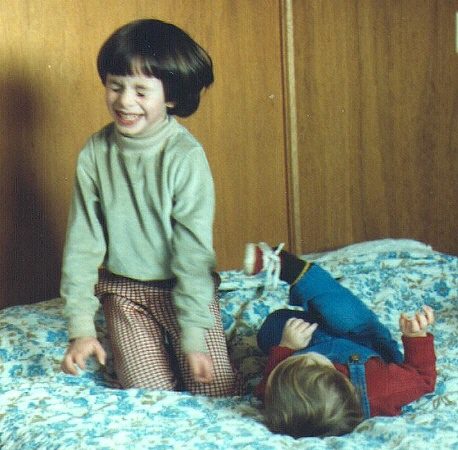 Bouncing on Dad and Barbara's bed with Ian, 1984