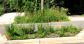 Three summers ago, the city made some major changes to our street, eliminating parking, adding a biking/walking path on our side of the street, and inserting a planted strip between the new path and the road. All of this work was a major disruption to my street edge gardens plus the one between out driveway and the one of our next door neighbor. This space had many day lilies as well as other plants.